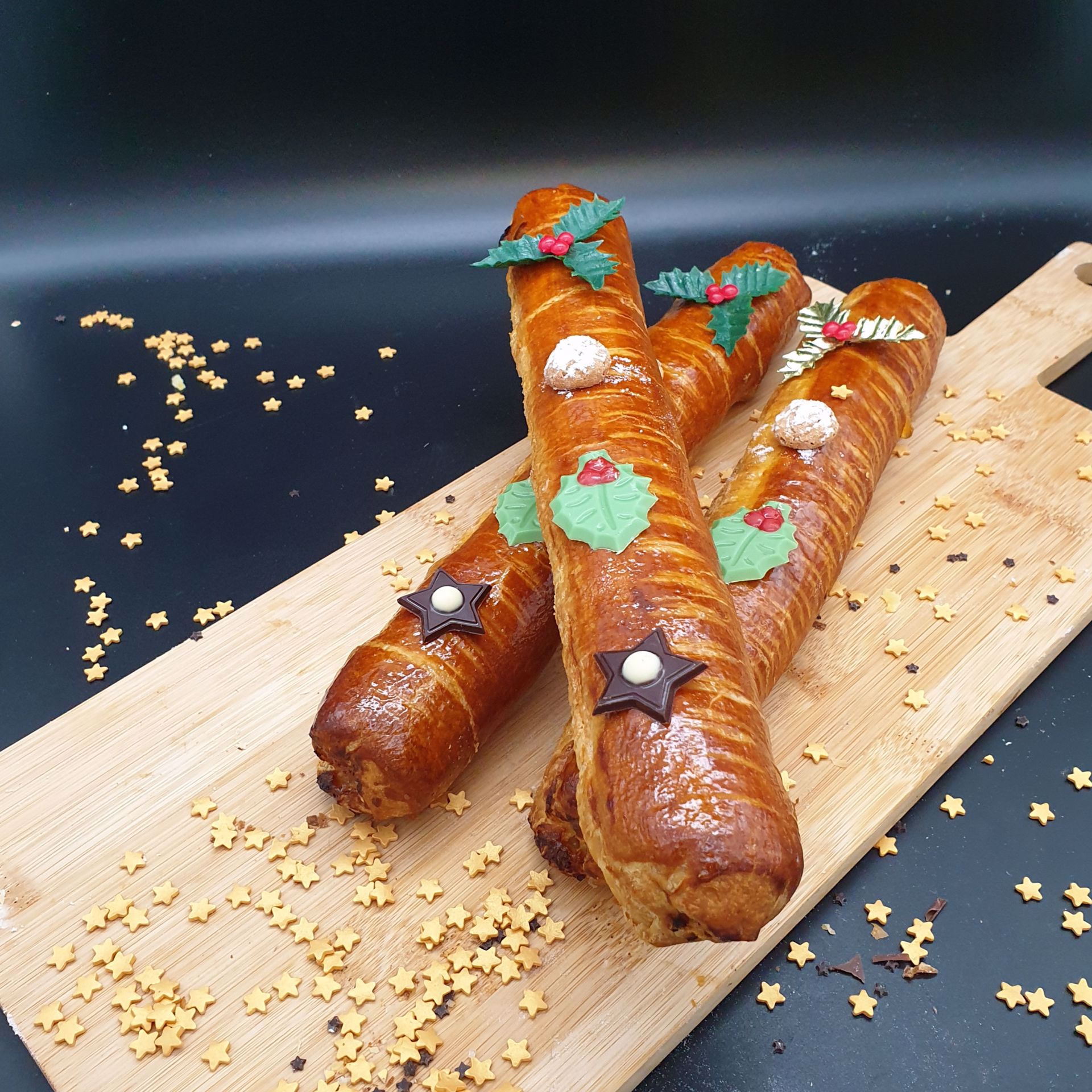 Heerlijke Kerst specialiteit van uw Echte Bakker. De beste amandelspijs in roomboterbladerdeeg. Versiert in Kerst stijl.